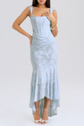 Step into pure finesse with this fitted and intricately draped dress. The figure-flattering cut and delicate texture create a stunning silhouette. An ideal choice for those seeking elegance and refined charm for special occasions or nights out.