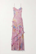 The Beatrice Dreamy Ruffle Gown is designed to turn every step into a statement. With layers of soft cascading ruffles and a silhouette that flows effortlessly, this gown brings a sense of romance and movement to any occasion. Whether you're dancing under fairy lights or walking into a summer celebration, it’s the kind of piece that moves with you—and never goes unnoticed.