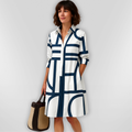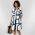 Let style and comfort merge in Helena – a modern midi dress with an elegant touch. The geometric pattern adds freshness and modernity to your look, while the figure-flattering A-line and soft fabric provide freedom of movement and comfort.