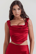 • Fit: Fitted at the bust and hips, with side cut-outs and a draped skirt.