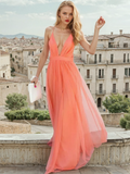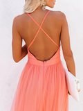 Wrap yourself in a dream with the Vesper Gown — a coral-pink masterpiece that floats like dusk light. Designed in airy layers of fine tulle, its A-line shape and softly defined waist create a poetic silhouette that moves like a breeze. Ideal for summer soirées, barefoot beach nights, or starlit dinners, this gown glows with warmth and whimsy.